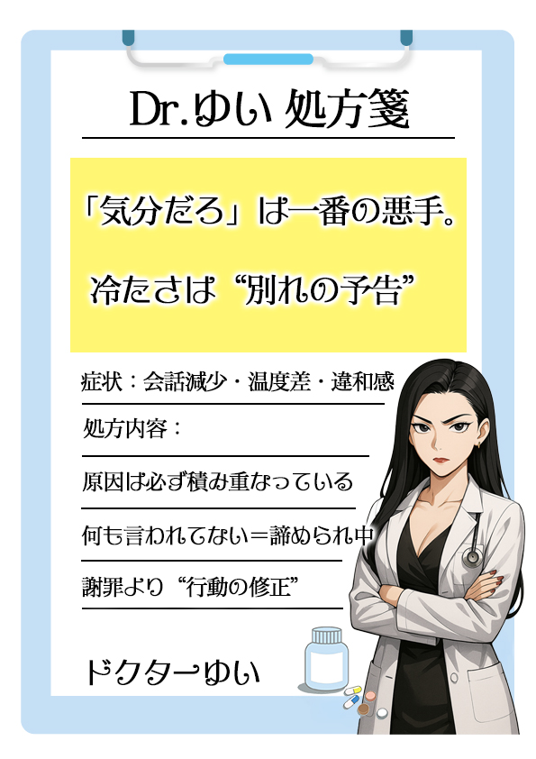 - 冷たくなった気がするけど特に何も言わない、というのは諦めてるだけなことが多い