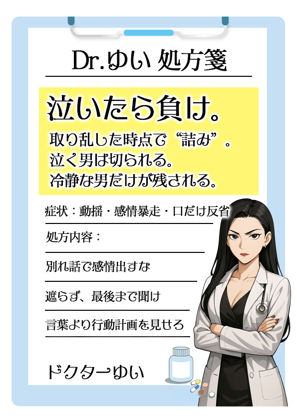 仮に泣いたり怒ったりして、俺はつらい、別れたくないという気持ちを見せたとしても、それは説得材料にならないんですよね。