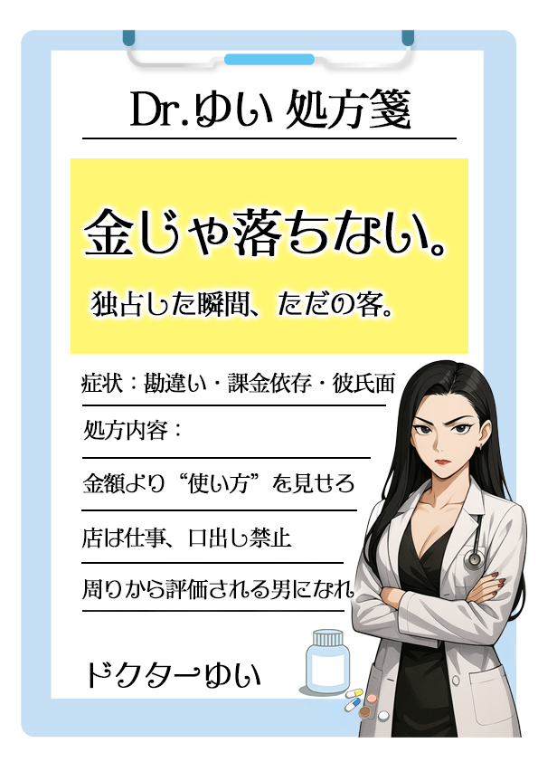「俺はこれだけ使ってやった」みたいな態度をとる男性、店では対応しますがプライベートでもやられたら精神的につかれますからね(笑)