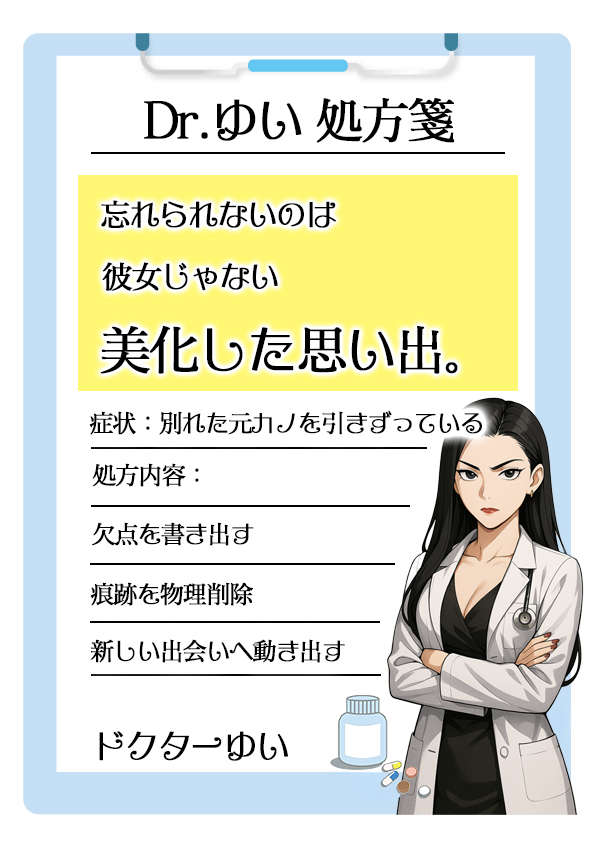 これすらできずに「未練が…」なんて言っているのは生活習慣も食生活も一切変えずに「ダイエットしているのに痩せない」とぼやいているのと同じなので、論外です(笑)