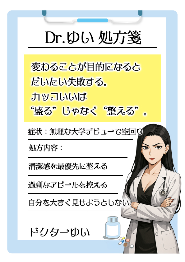 大学は高校よりずっと自由なこともあり、自分をどう見せるかを急に意識し始めるものなんですよね。
