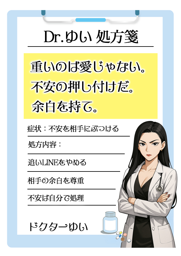 相手を大切にしたい気持ちは素晴らしいですが、大切にすることと、相手を自分の不安解消に使うことは全く別の話です。