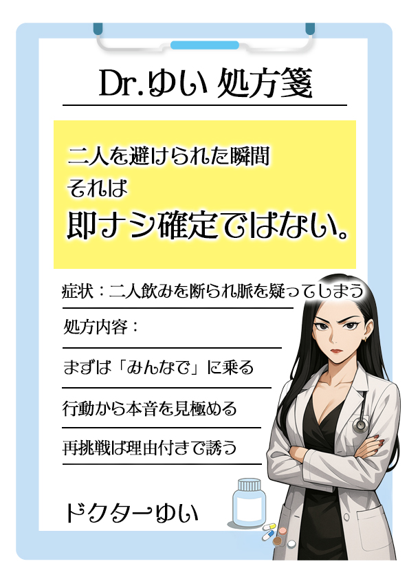 - 「みんなで」という返事は、基本的に二人きりを避けたいサイン